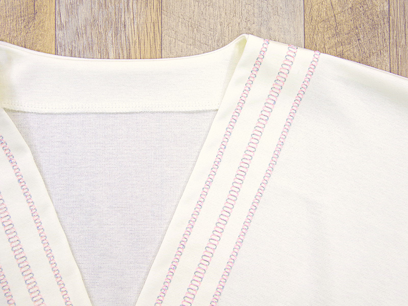 カバーステッチミシンに表裏どちらの面にも美しい縫い模様が現れる、ベビーロック独自の「両面飾り縫い」機能を搭載しました。