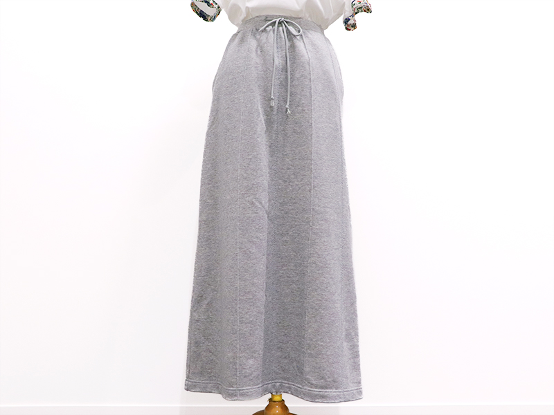 ベビーロック・スタジオで人気の「ラグランパーカー」に使われている裏毛ニットを使ってロングスカートを作ります。
