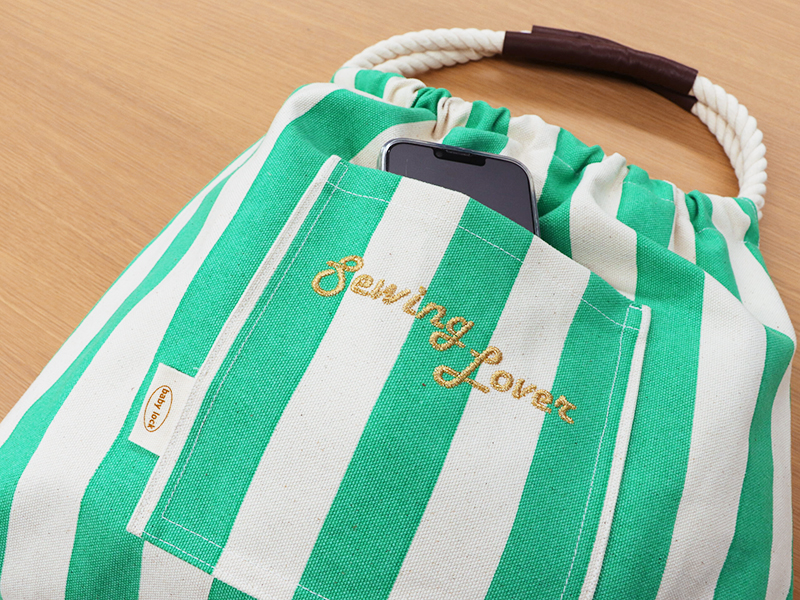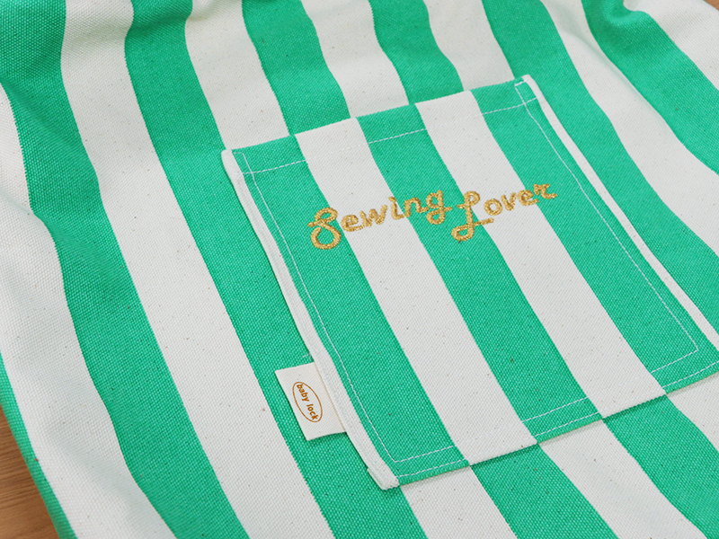 ポケット部分にはベビーロックのオリジナルタグと、ミシン刺しゅうで「Sewing Lover(裁縫愛好家)」を施しアクセントに。刺しゅうの糸色はお好みでお選びいただけます。