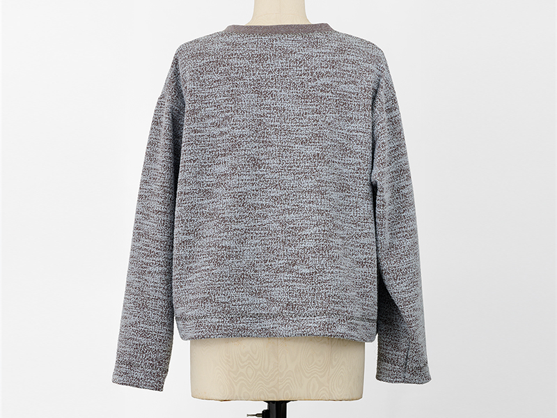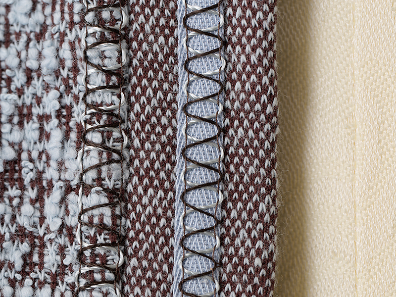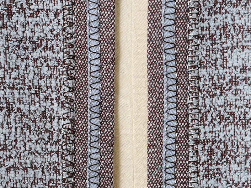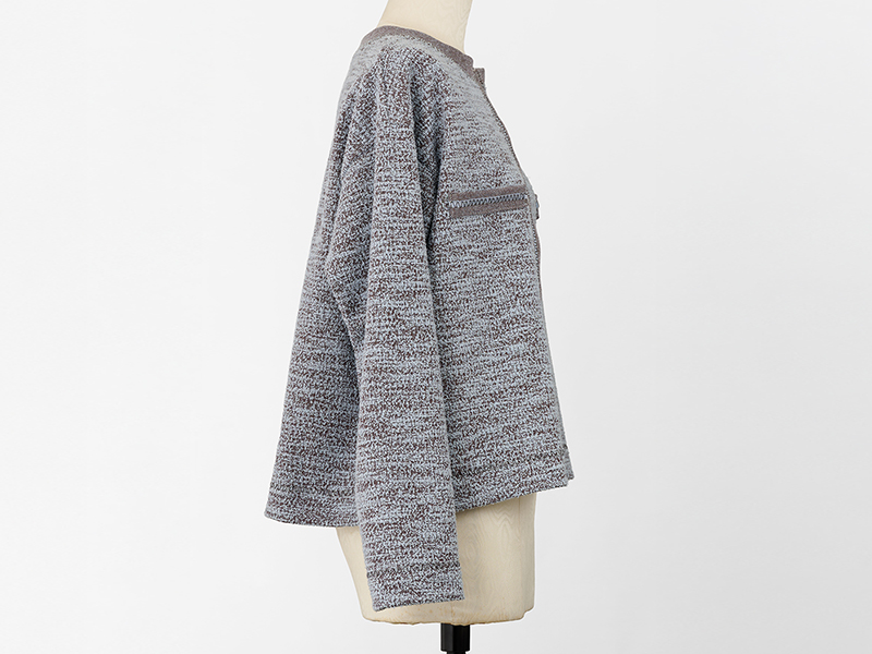 今年6月に発売されたばかりの、ベビーロックの最新機種「Tumugi」を使って作る、ジャケット風カーディガン。ツイードニットの表裏を使い、バイカラーに仕上げました。きれいめにもカジュアルにも合わせやすいデザインです。「Tumugi」独自のクリエイティブカバーステッチで、前端、ポケット口にはテープを縫いこみながら飾り縫いをし、華やかさをプラス。新しいミシンの性能を存分に楽しめます。