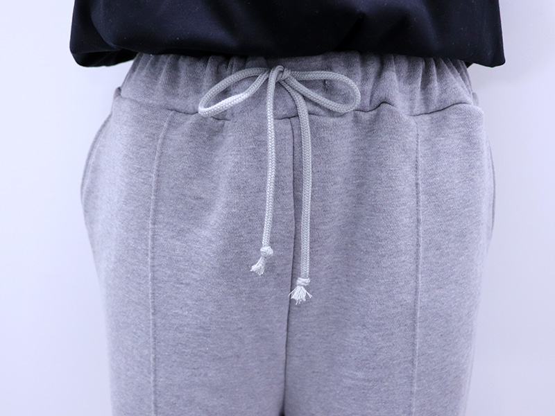 カバーステッチミシンのピンタック押えを使ってきれいに入れたセンターラインが、カジュアルな中にも上品さを添えるピンタックパンツ。