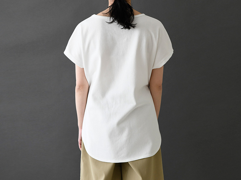 丸くカットされた裾のラインが、計算された裄丈とともに、