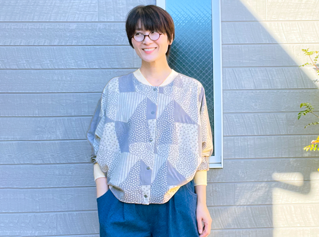 「ドルマンスリーブのカーディガン」のワークショップを開催いたします。 イラストレーターという職業の傍ら、趣味やお仕事として手作りを楽しんでいる津田蘭子さんのデザイン。津田さんはすべて自己流で年間100着以上の服を手作りされています! 2本針4本糸ロックミシン「Sakura」とカバーステッチミシン「Kanade」の2台を使って、袖つけがなく簡単に作れるドルマンスリーブのカーディガンを作ります。身頃の縫い合わせ、リブつけは2本針4本糸ロックミシンで、カーディガンの前立てと裾はカバーステッチミシンで作っていきます。 前後を