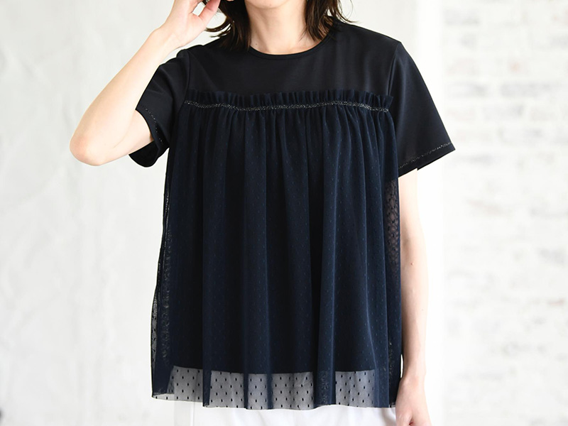 作品をつくるボトルネックのギャザー切替えプルオーバー