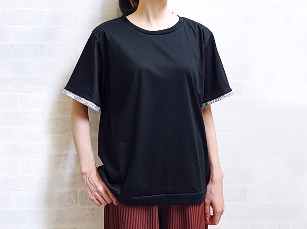 ロックミシン1台で作るクルーネックTシャツの講習会です。ベビーロックの4本糸ロックミシンをお使いの方、購入をご検討中の方に適しています。また、Tシャツ作りを体験したい初心者の方もご参加いただけます(「ご注意」をご確認ください) この講習会では、ベビーロックのオリジナル教材(テキスト+Tシャツ用裁断済み生地)を使って、クルーネックTシャツをつくりながら、ニットの縫い合わせ、袖や衿の付け方等を学びます。 Tシャツの仕上がりサイズはバスト108cm、着丈56cmのワンサイズです。また、袖口のリブは、お申込み時にお選びいただく白または黒のいずれかに加