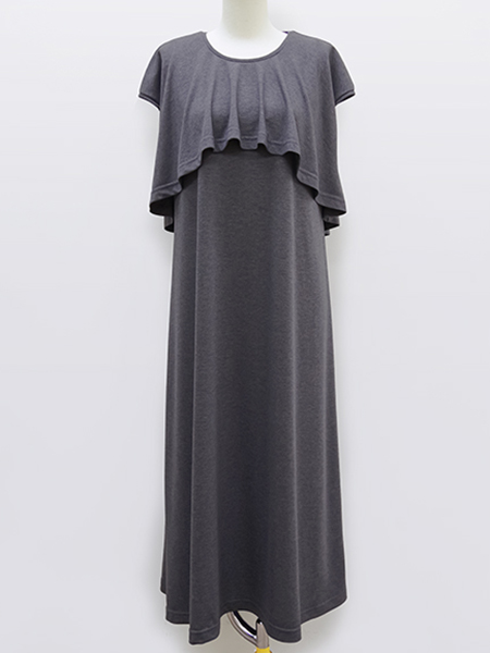 前後差のあるフレアシルエットのプルオーバーを重ねたAラインのワンピース。