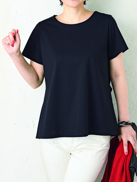 後身頃にプリーツ生地を使ったスタイリッシュなカットソー。